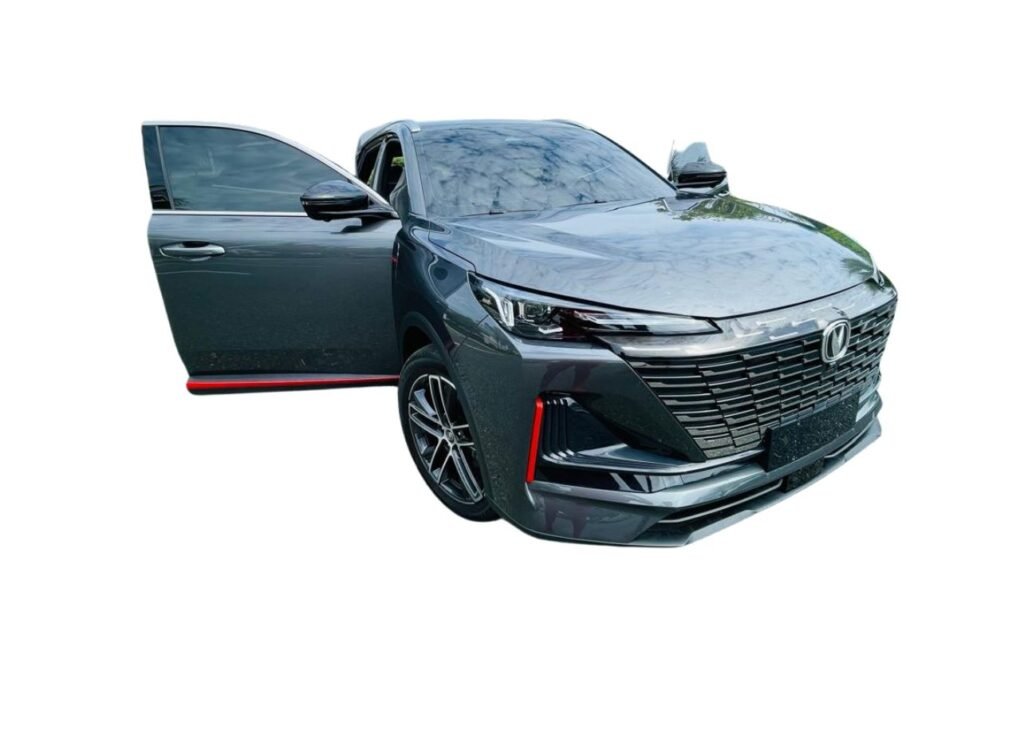La Changan CS55 2024 gris se destaca por su diseño moderno y deportivo, con una silueta alargada y un estilo futurista Este SUV cuenta con un spoiler elegante, barras en el techo y terminaciones cromadas que le dan un toque más deportivo.